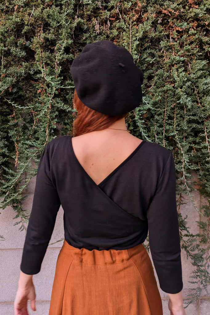 3/4 sleeves top with crossover neckline